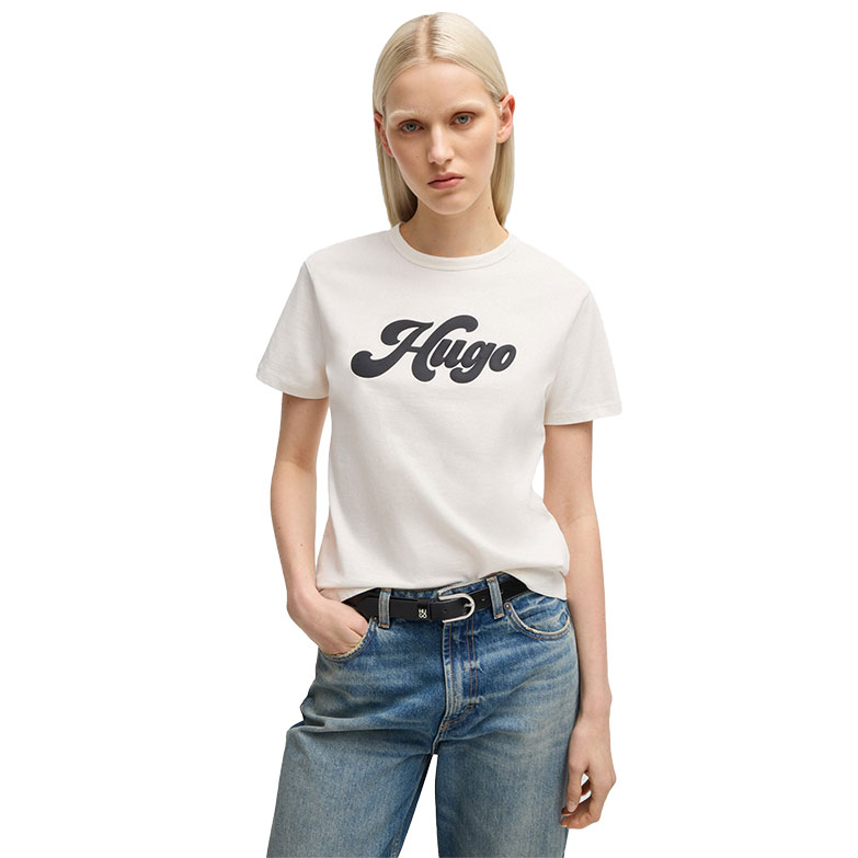 Σχεδιασμένο από βαμβάκι που αναπνέει, αυτό το T-shirt της HUGO Womenswear δίνει μια ρετρό νότα με το εμπνευσμένο από τη δεκαετία του ’70 λογότυπο.